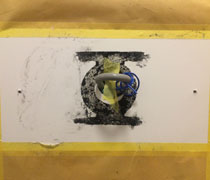 キッチンパネルは交換が大変です。こんな大きな穴も適切な材料でしっかりリペア致します。