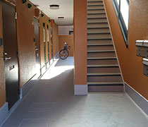 18年近く経過したマンションの改修工事をしました。屋上の防水はもちろん外壁の塗替え、ぬり床から長尺シートへの変更等、新築の様に改修工事いたします。ご相談ください。